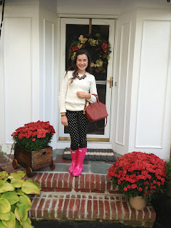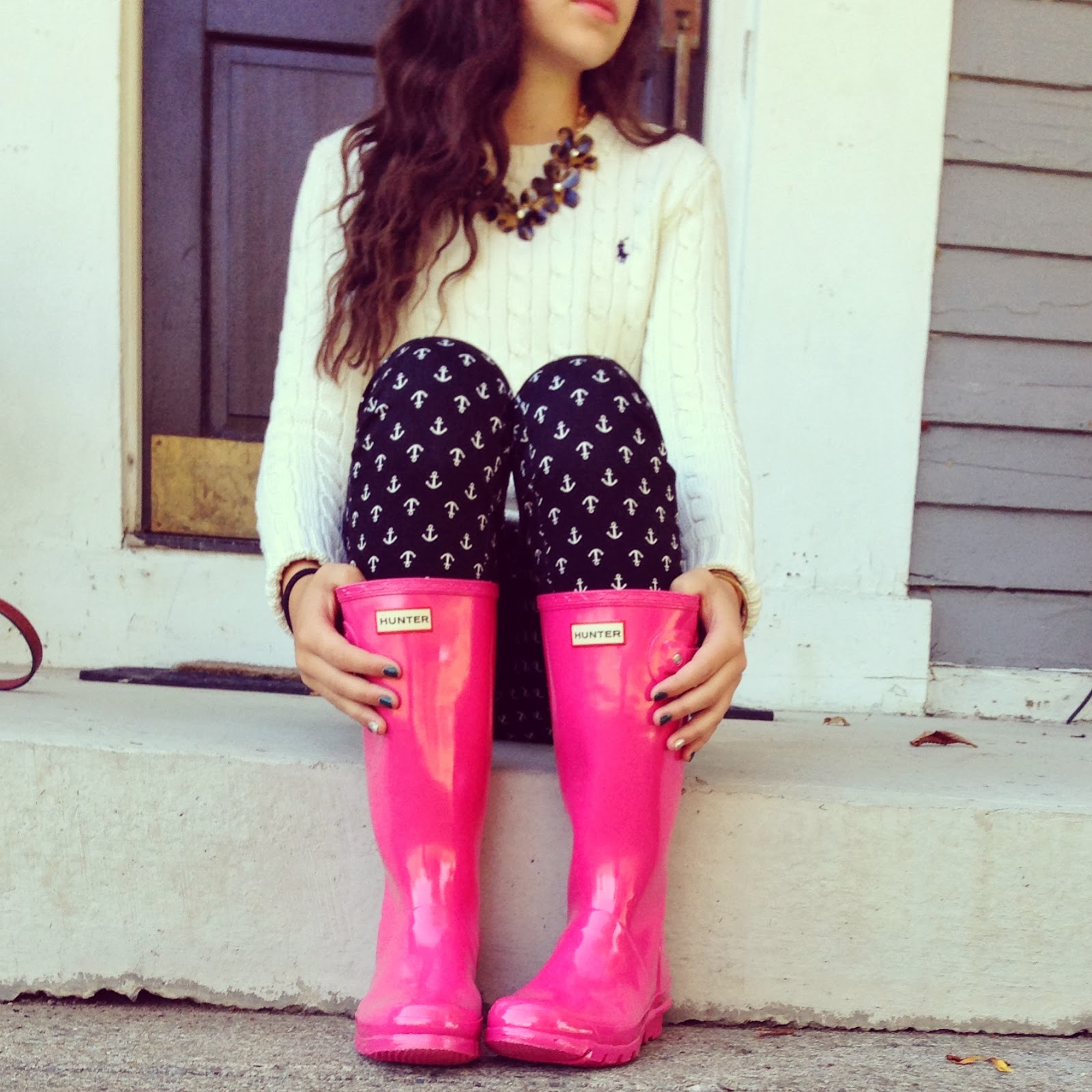 4. Anchors away. My HUNTERS paired with a crew-neck cable-knit sweater, anchor pants, and my A Modern Boutique necklace.