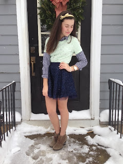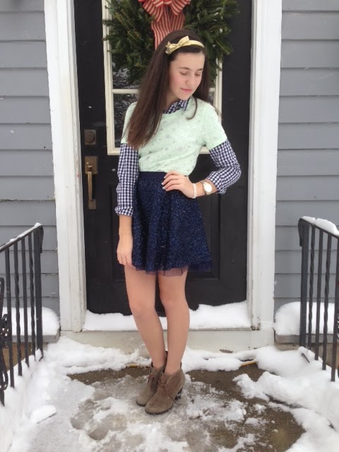 Sequin skirt: Gap Kids, oxford: abercrombie kids, t-shirt: J. Crew factory, Boots: clarks, Headband: devonalana on etsy