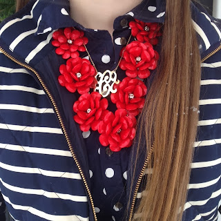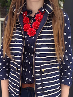 Vest: J crew factory, shirt: target, red necklace: Brina Box, initial necklace: delia’s, jeans: abercombie, belt: target, socks: gap