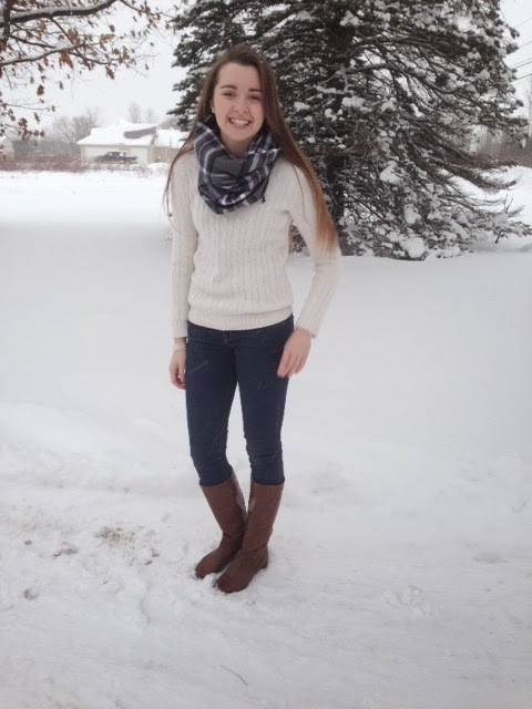 Sweater: Ralph lauren, scarf: Abby for Piece Apparel (see outfit 3 for details), Jeans: abercrombie, boots: frye