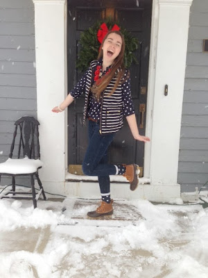Vest: tj maxx, Scarf: kiosk at the mall, sweater: ralph lauren, necklace: delia’s, Chevron Poppy Clips , Jeans: Abercrombie, Socks: Target, Boots: LL Bean