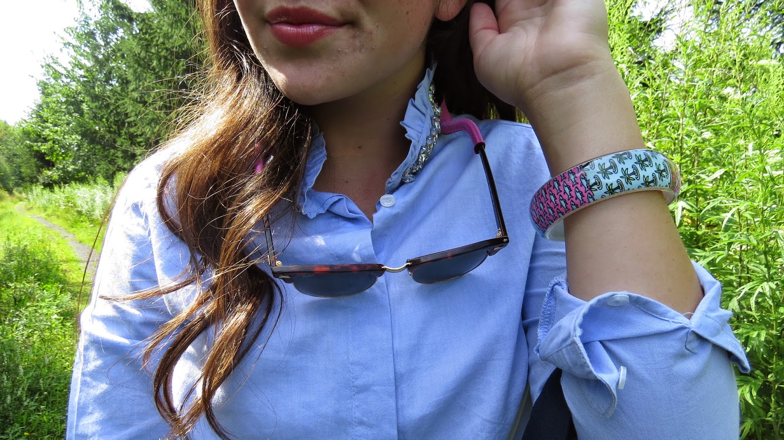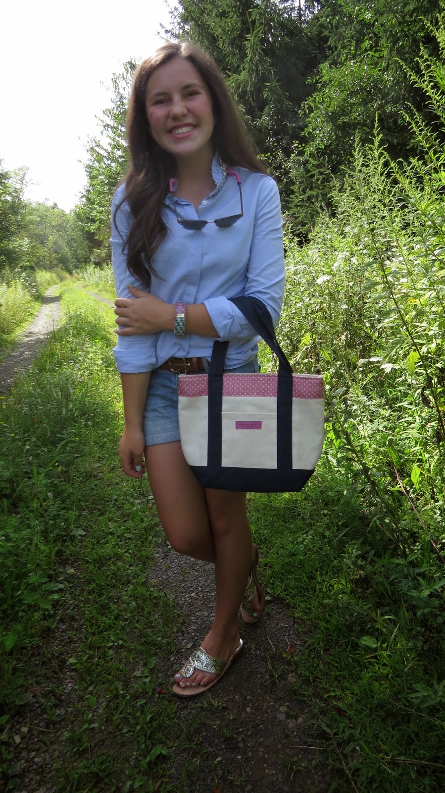 Hey everyone! So today I got a very exciting package from Vineyard Vines that made my day! I love the bangle, croakies, and coozie. In this post I styled my bangle with an oxford from Kohl’s (from last summer). Instagram was going crazy over this oxford last year because of how similar it looks to the J Crew Tilda top. I dressed mine down by adding some boyfriend shorts and tucking my top in.