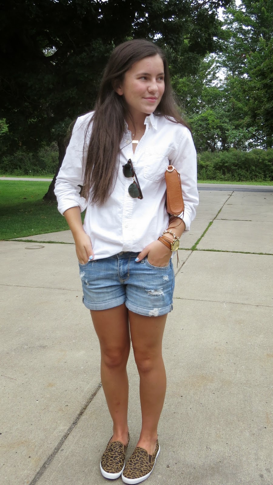 Button Down: Old Navy Boys only 10$ (here)// Old Navy Boyfriend Shorts (here)// Old Navy Leopard Sneakers (here) // Michael Kors watch (here)  // RayBan Sunglasses (here) //Moon & Lola necklace (here) // Love Always necklace (here) Use code “belleoftheball45” to get 15% off of your purchase