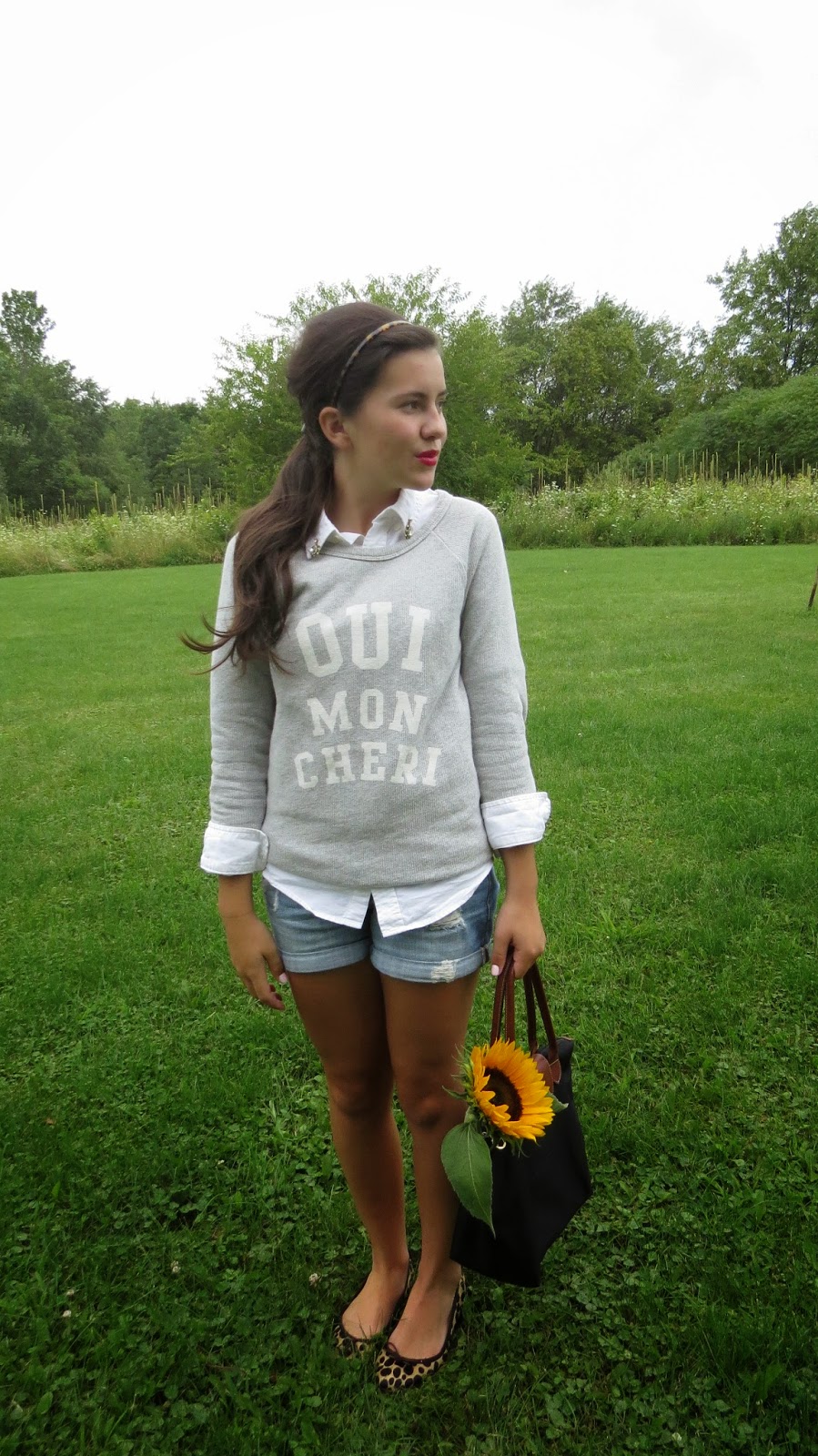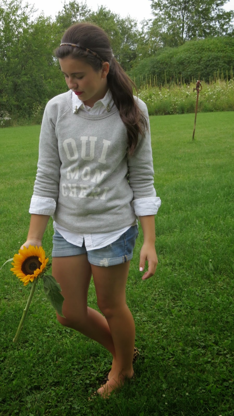 J Crew Sweater (here) // Button Down: Old Navy Boys only 10$ (here)// Old Navy Boyfriend Shorts (here)//  // Gap Flats (similar here) //  Tortoise headband (similar here)