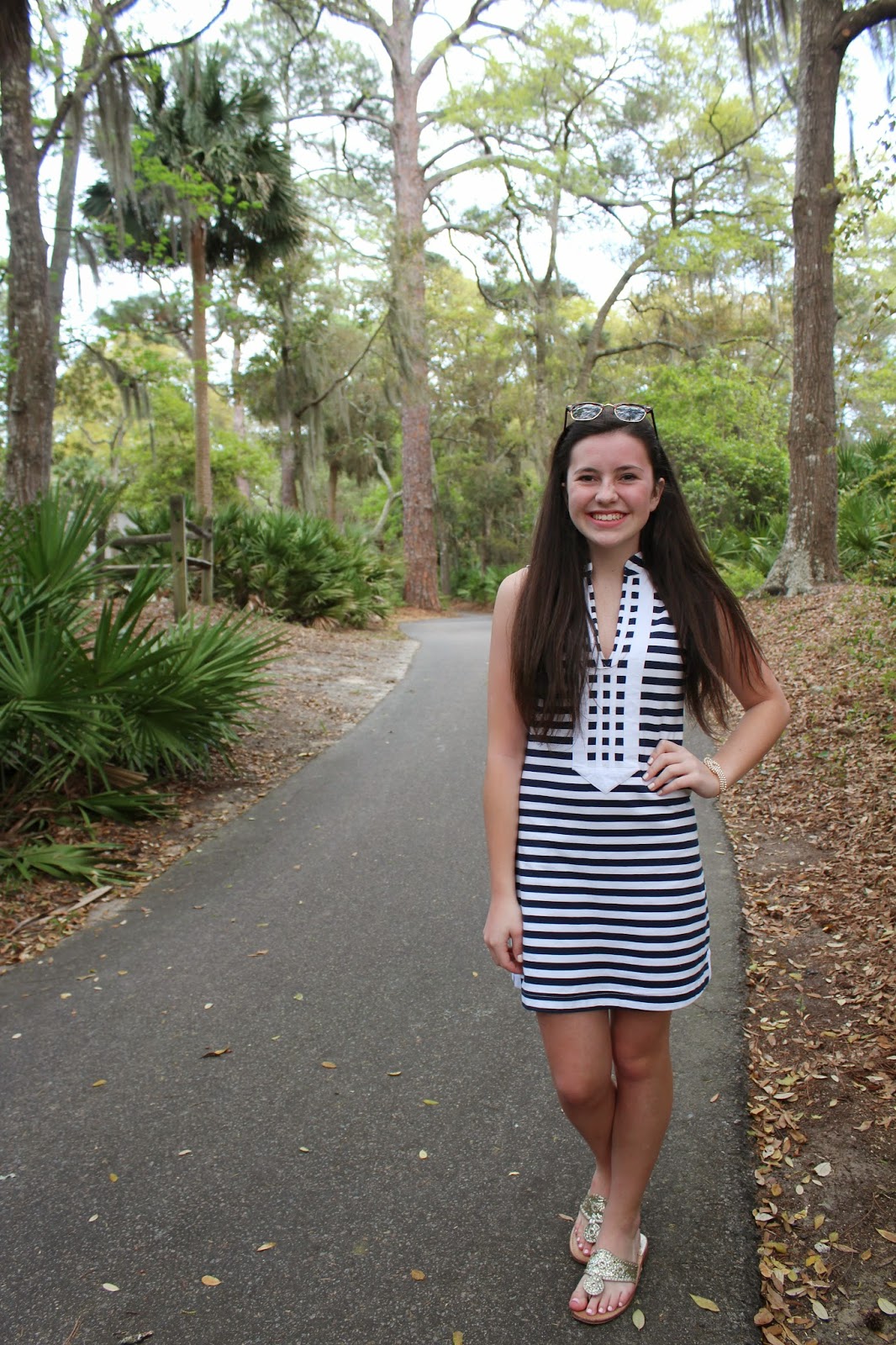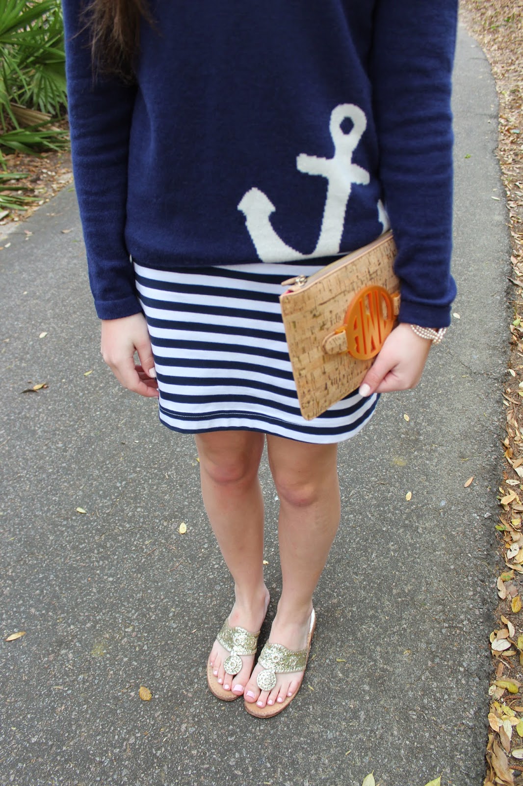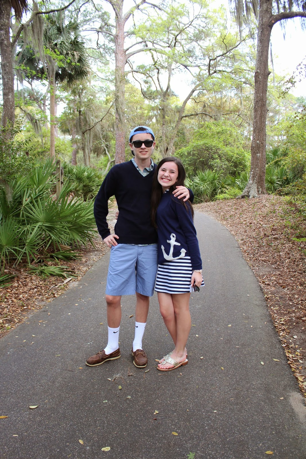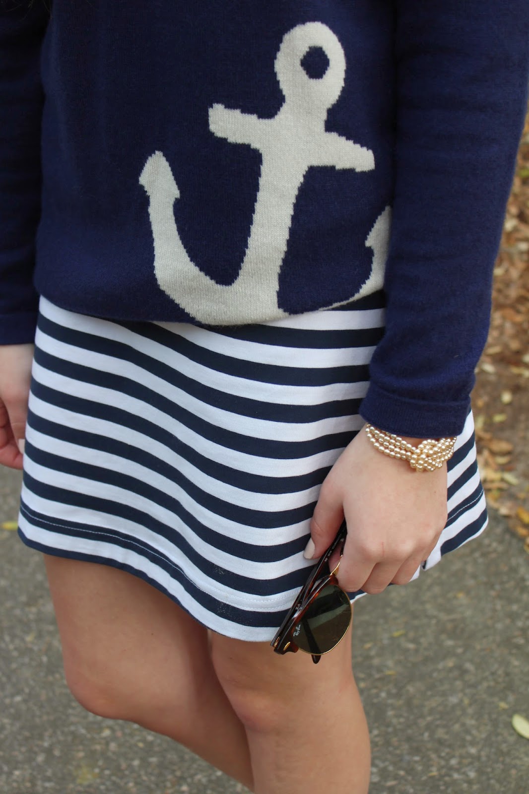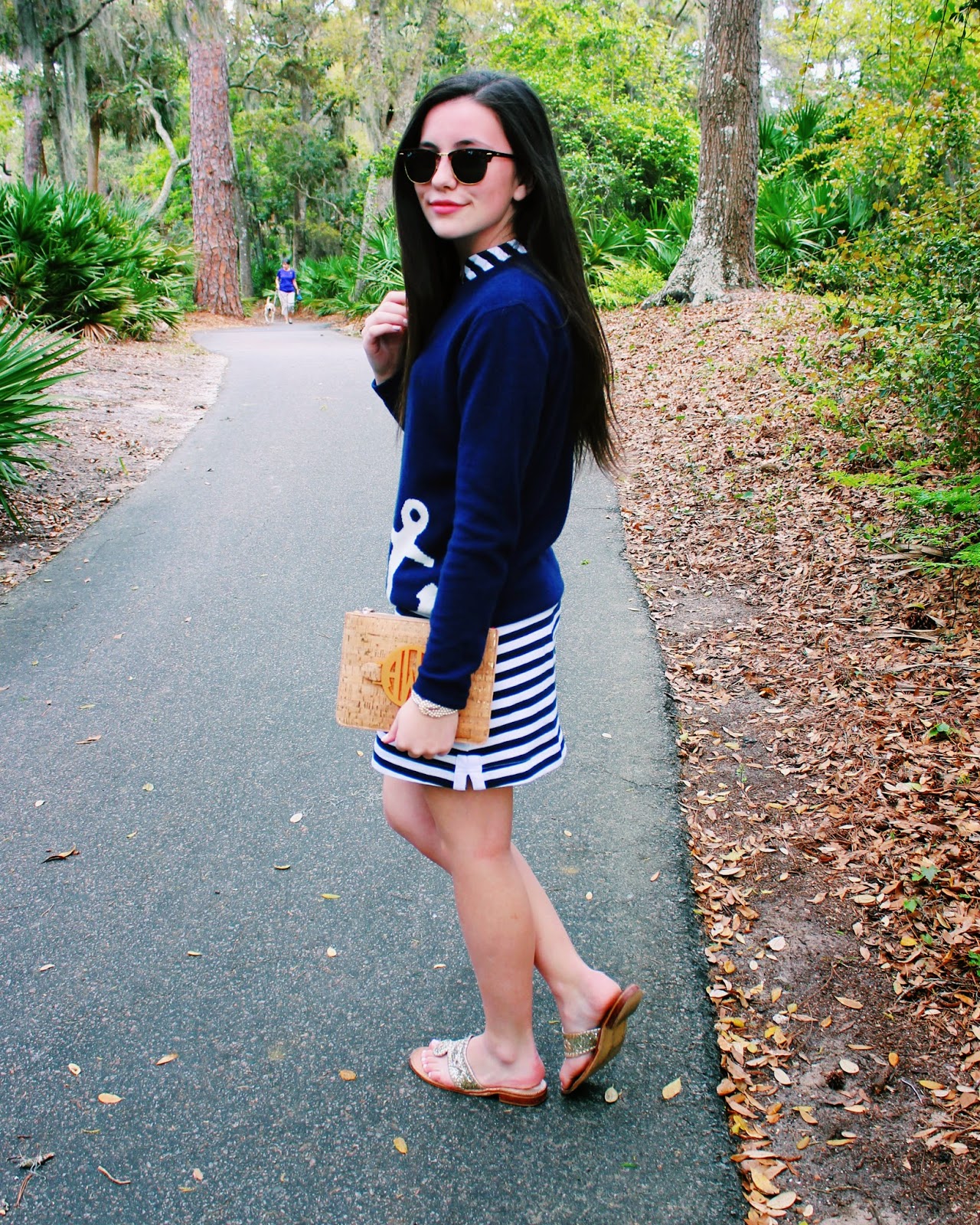 Today I’m sharing my outfit for Easter, along with my friend Carolyn’s and my cousin Pete’s. I wore my adorable Duffield Lane tunic dress. This dress is so comfortable, and the fact that its navy and white stripes makes me love it even more. When it got cooler I put on my sweater from Two Bees Cashmere. I can’t even begin to tell you how soft this sweater is, and how cute is the anchor detailing?!?