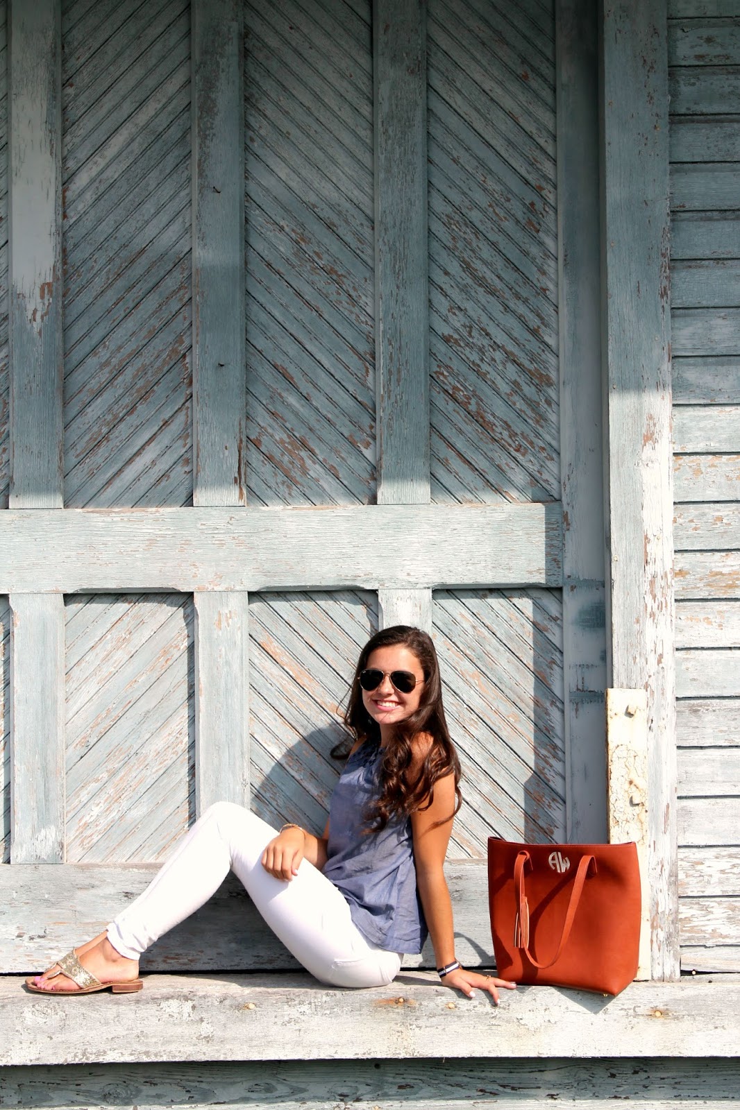 Hey everyone! After seeing this adorable top on Old Navy’s instagram I had to have it! It reminds me so much of J Crew and I love how lightweight it is for hot summer days. I paired it with white jeans and my favorite tassel tote from www.personalizedfrommetoyou.com!