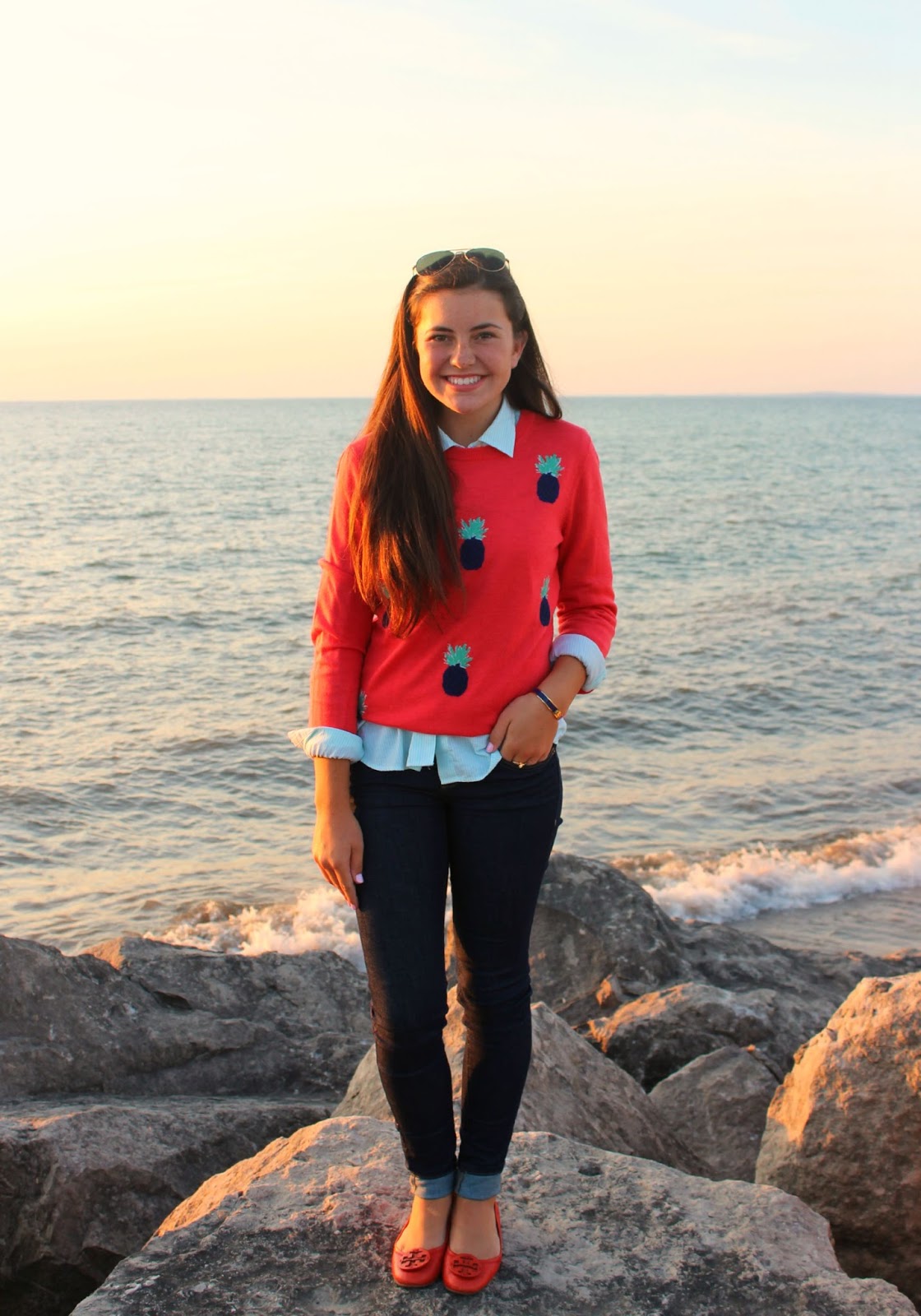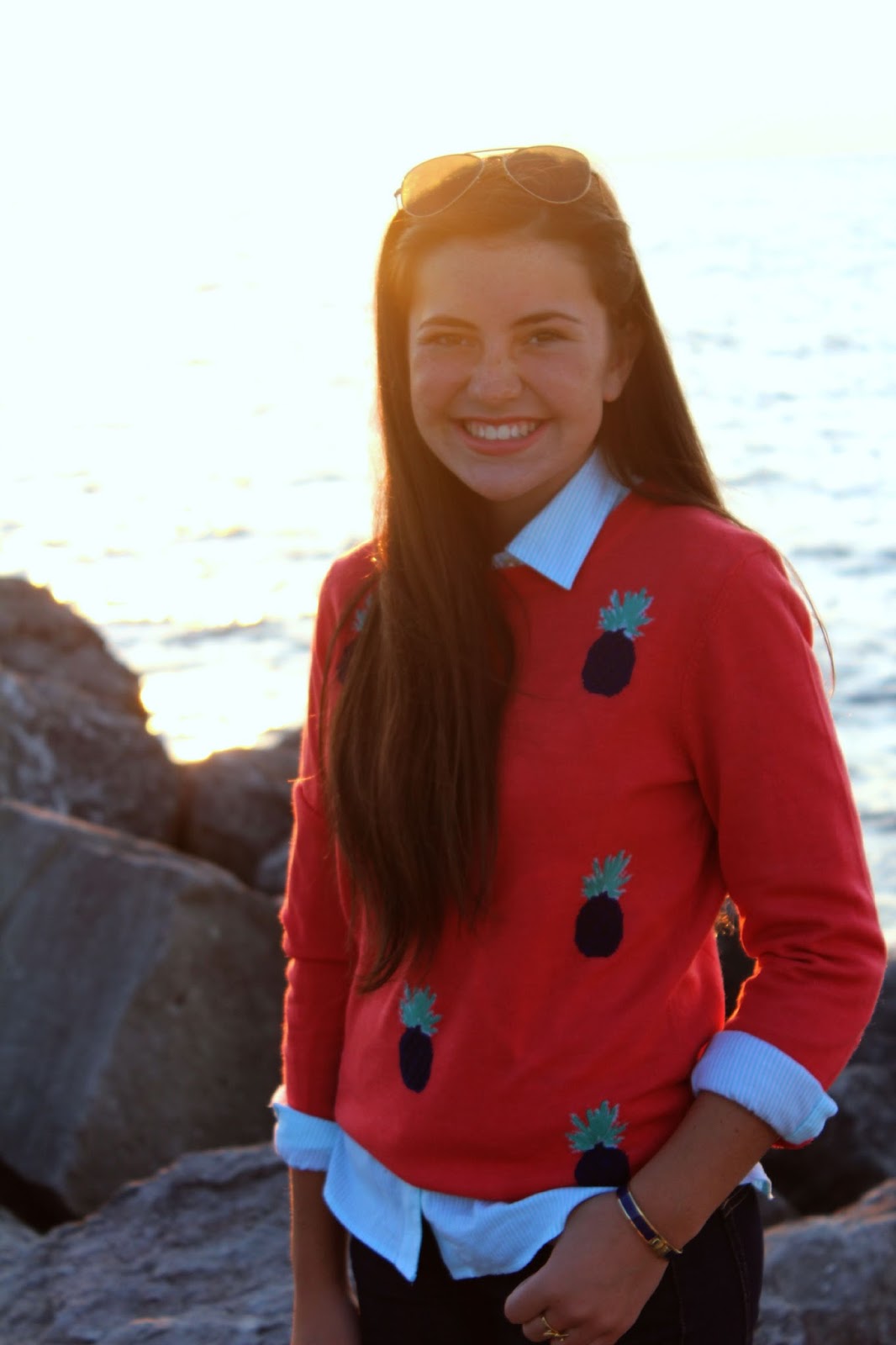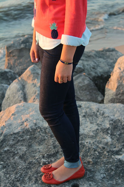 Hey everyone! Recently a favorite company of mine announced some extremely exciting news. Vineyard Vines now has a line of denim! This pair of skinny jeans is by far the best pair of jeans I have ever owned. These jeans are super stretchy, making them the perfect fit and super comfortable. In the new line there are so many washes and styles to choose from, everyone is sure to find their perfect pair! Find all the new denim here! I completed the outfit with an adorable pineapple sweater. I’ve been loving the pineapple trend, and I’m thrilled Vineyard Vines was able to make such a huge trend into a sweater I know can be worn for many years to come. With fall approaching very soon, it’s important to have good transition pieces, and this sweater is definitely perfect for transitioning into fall. I can’t wait to wear it with a puffer vest and my duck boots! The quality of the sweater could not get any better and I know it will be a lasting piece in my wardrobe.