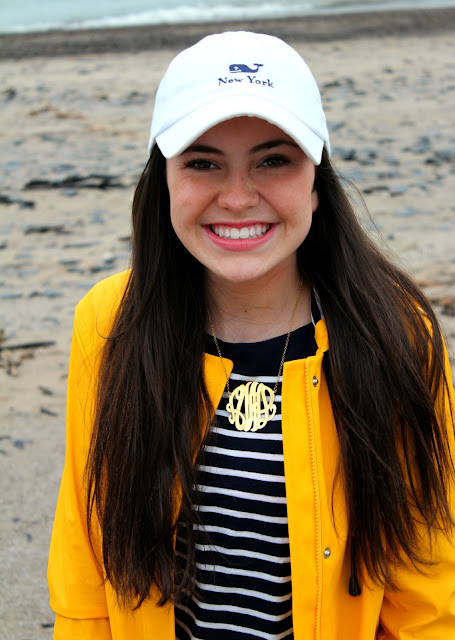 Rain Coat (similar) // White Jeans // Hunters // Vineyard Vines Hat // Necklace// KJP Bracelet from The Lucky Knot use code BELLEOFTHEBALL for 15% off!