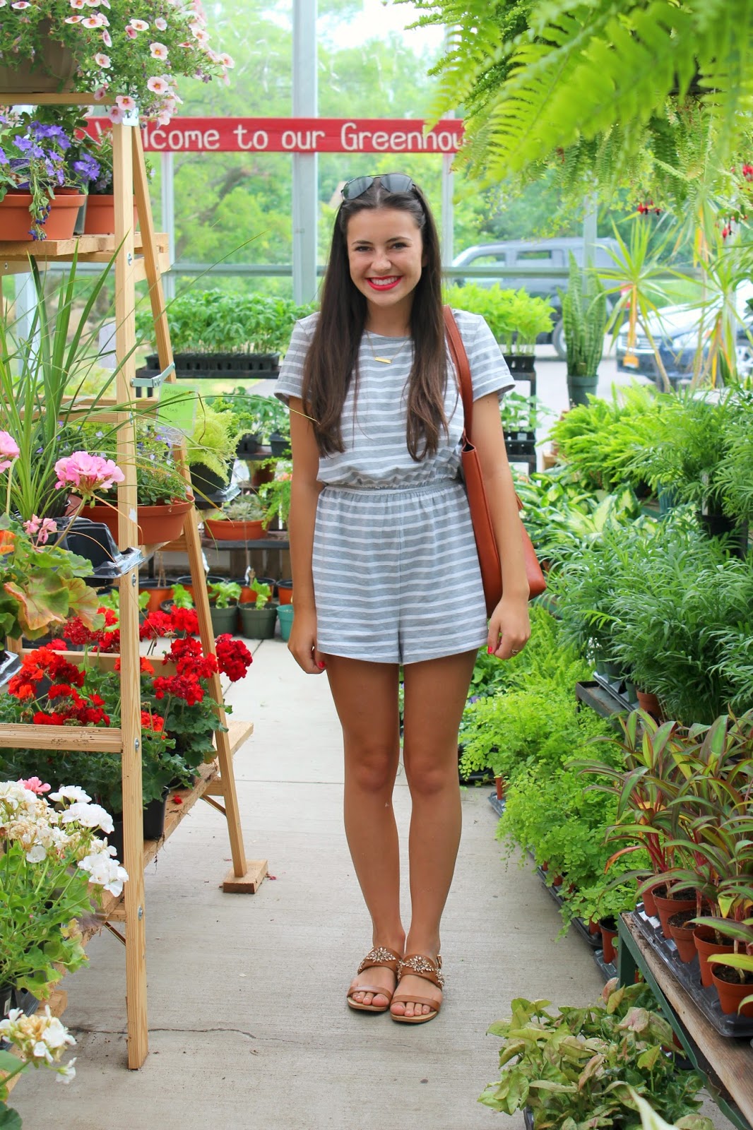 Hi everyone! I hope your summer is off to a great start! During the summer I live in rompers. They are so comfortable, and easy to throw on. Lately the weather has been so hot, and this open back romper was perfect because it’s so lightweight. I paired it with some fun sandals and a big monogrammed tote.