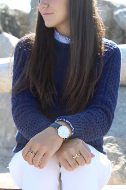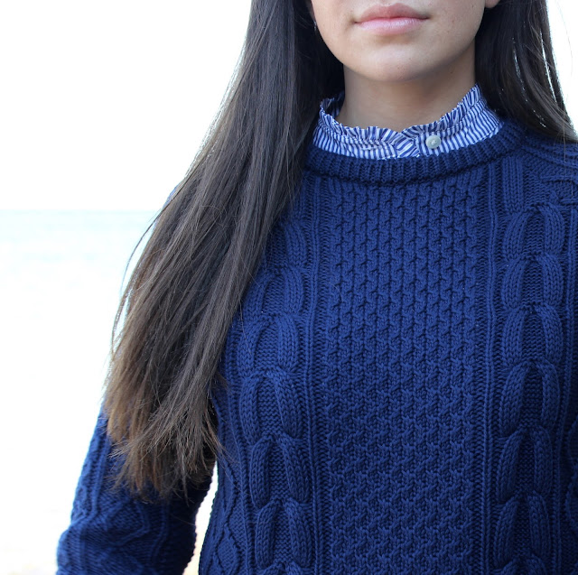 Hi everyone! Today I’m wearing this adorable fisherman sweater that is going to be absolutely perfect for fall. I can’t wait to layer it with a vest and wear it with my bean boots. My exact sweater hasn’t been released yet but it will be soon on www.VineyardVines.com. I linked a very similar one at the end of this post. I’m also wearing my KJP Necklace as a headband, doesn’t it look adorable!