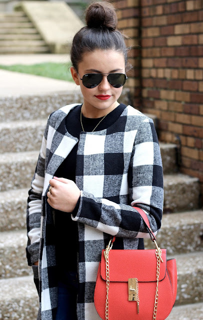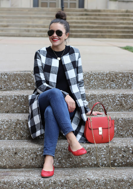 coat from SheIn is an amazing price, and I loved wearing it with a pop of red.