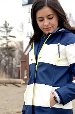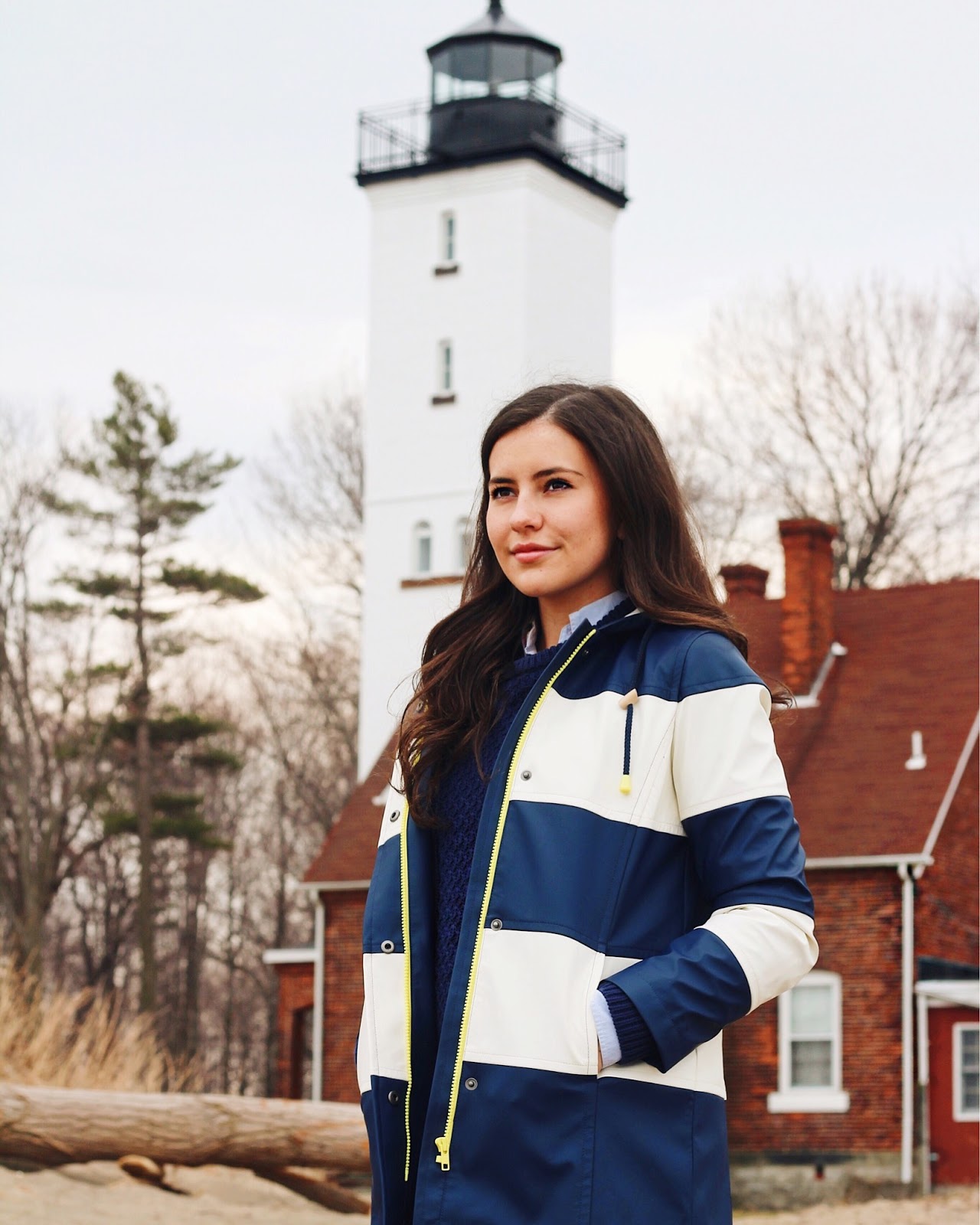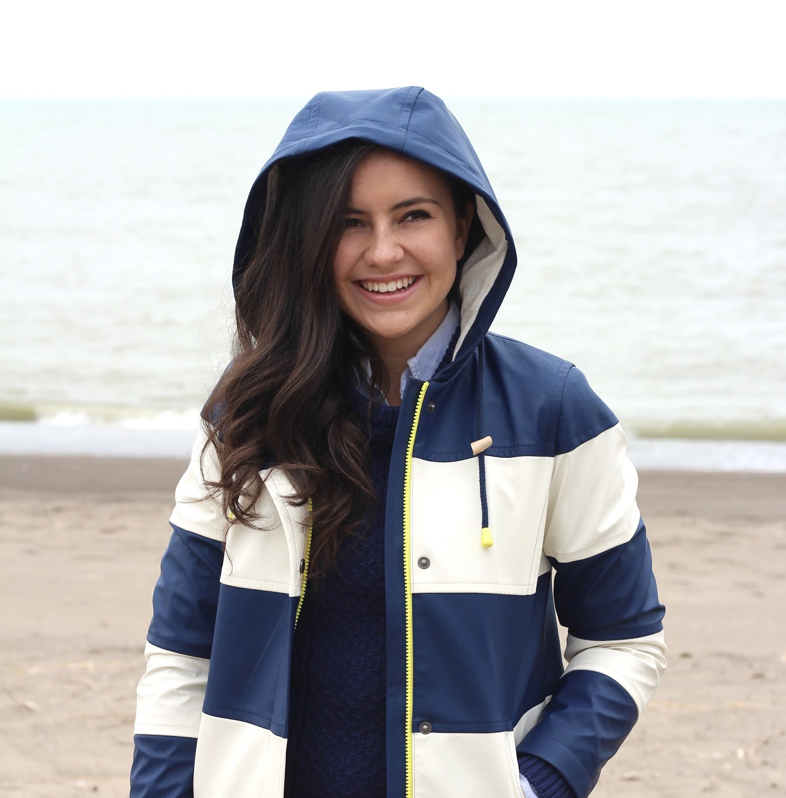 Hi everyone! Hope you’re having a great week so far! I’m a total sucker for a cute raincoat and I can’t get over this striped one. I love the yellow detail combined with the navy stripes. I’m always so excited for the rain so I can wear this adorable coat!