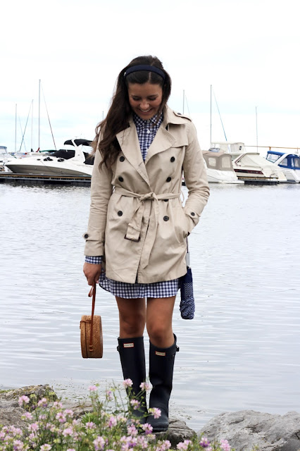 under $100 and I love the fit of it! Today was a rainy day, so I paired it with my favorite KJP dress and my Hunter Boots. Use code “AWKJP” for 15% of on