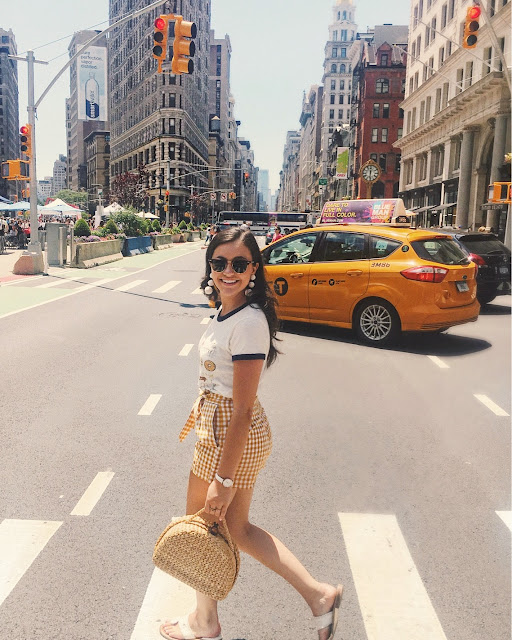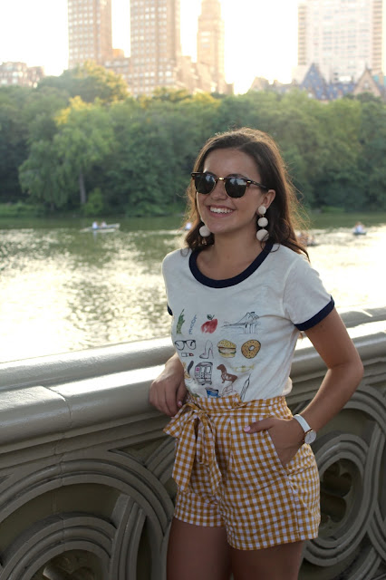 Hi everyone! A day trip to the city was the perfect way to wrap up the weekend! In order to beat the heat I wore these lightweight gingham shorts with this adorable New York tee. We had such a great day filled with ice cream, shopping, and sight seeing. Shop everything I’m wearing at the end of the post!