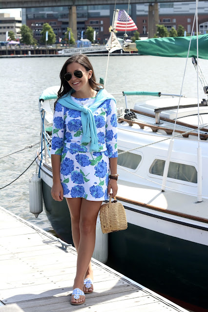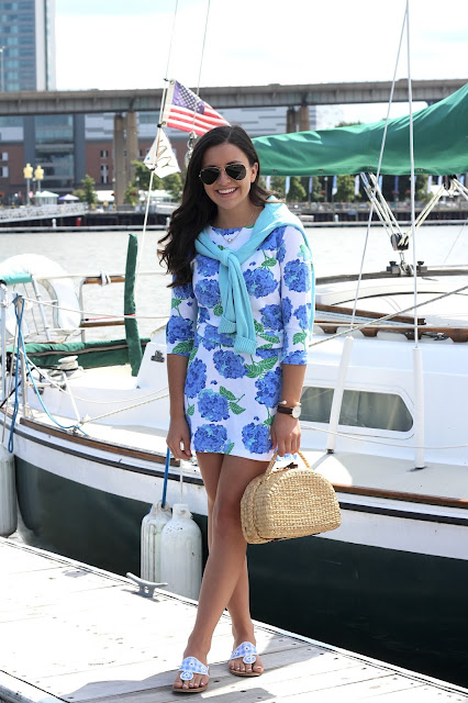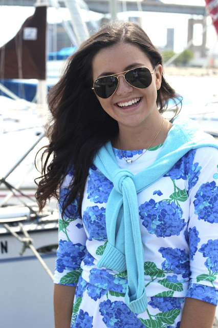 Hi everyone! I can’t get enough of hydrangeas during the summer, and this hydrangea print dress from  Mahi Gold couldn’t be any cuter. I love the combination of the bright blue hydrangeas, on the white dress with a pop of green. I paired the dress with this adorable anchor sweater from Pink Pineapple Shop.