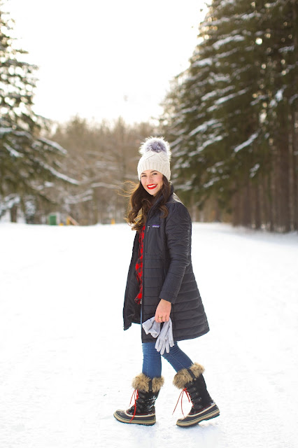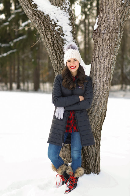 Hi everyone! This week has been the coldest yet, and I’ve been bundling up everyday to stay warm. It’s always hard in the winter to find an outfit that is cute, yet warm. This flannel from Shop Southern Roots TX is lined with sherpa and so cozy. I paired it with my favorite Patagonia jacket, also available at Southern Roots. Normally winter jackets are very heavy, but I like how this one is lightweight and still keeps me warm. Another winter staple of mine is my Sorel boots. I love the feminine touch of the fur, but they still keep my feet dry and warm which is so important in the snow! I loved exploring in the snow and shooting with