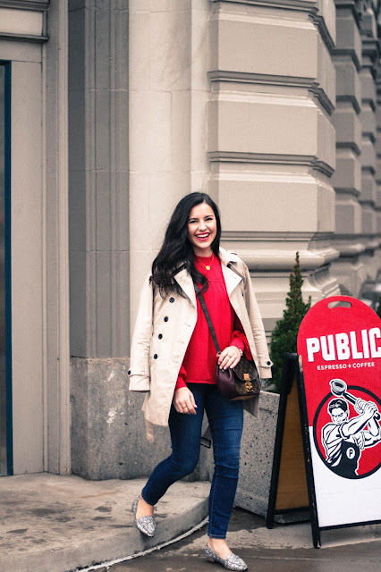 Hi everyone! Today I’m sharing an outfit that’s perfect for a casual Valentine’s Date. I found this adorable blouse at Gap (for an amazing deal), it’s different than what I generally wear but I love how flowy and feminine the top is. I paired it with some of my favorite simple jewelry pieces, and this gorgeous bag from TrendLee. TrendLee has so many beautiful designer bags, in great condition for amazing prices.