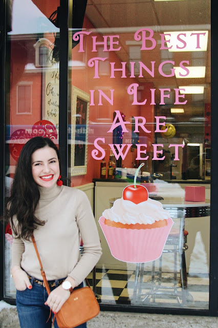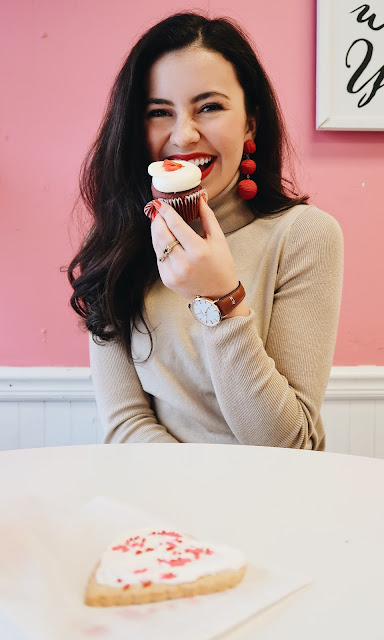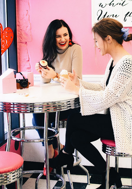 Hi everyone! Yesterday I went to the cutest sweet shop with my friends. We had adorable Valentines treats, and couldn’t help but take some photos with the pink walls!