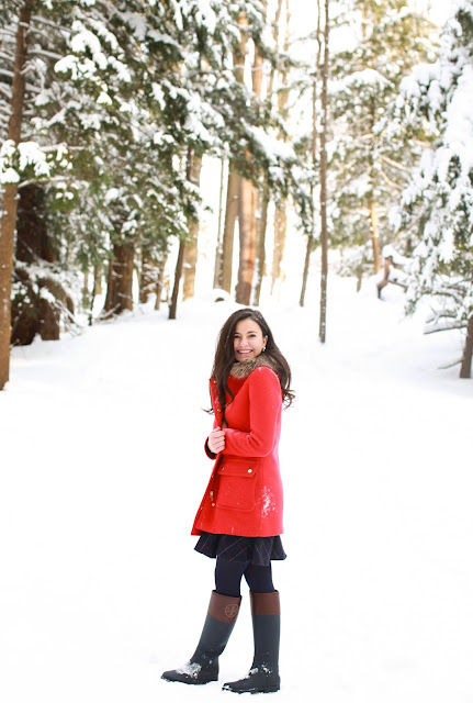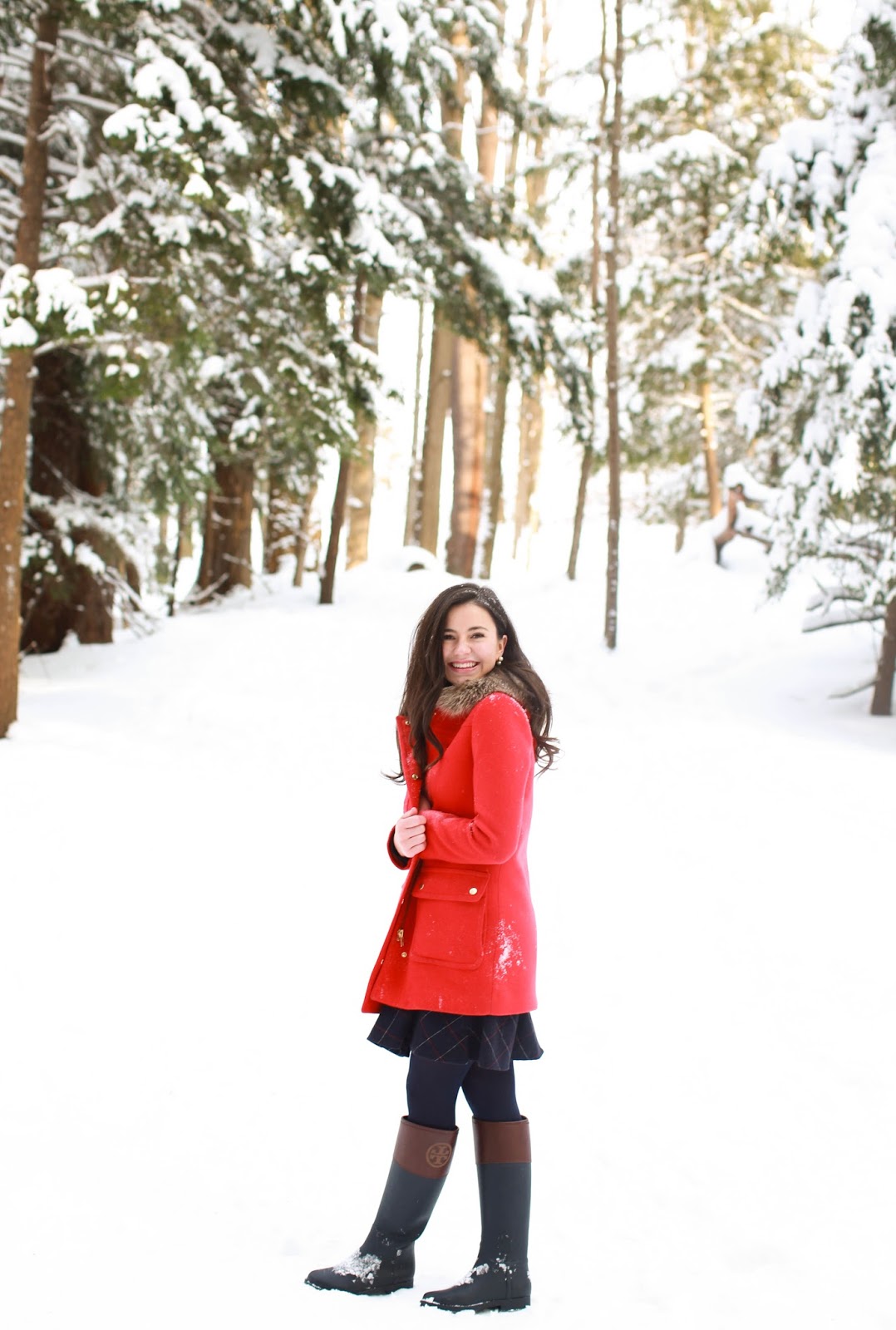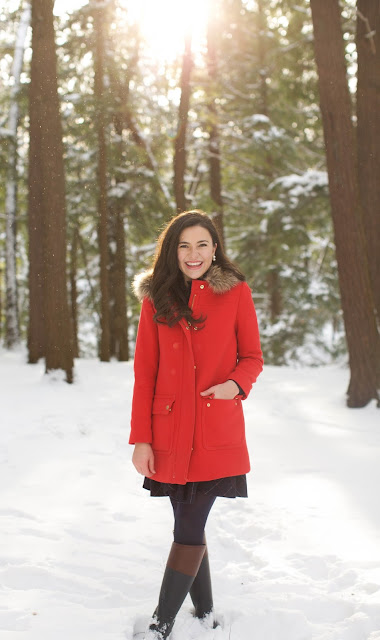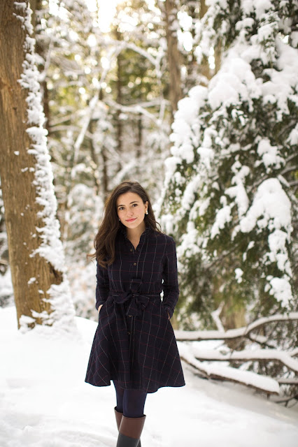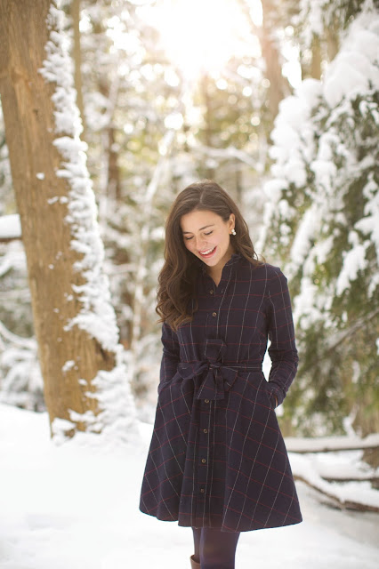 Hi everyone! Being put together in the winter is something I find to be so hard! It’s freezing out, so most of the time I end up in jeans and a turtleneck. This dress from KJP is perfect for the winter- it’s made of flannel! I feel so put together when I wear it, I especailly love the ruffle detail at the collar and the tie waist. The dress is so feminine, yet perfect for combating the winter flurries. I loved shooting this look with