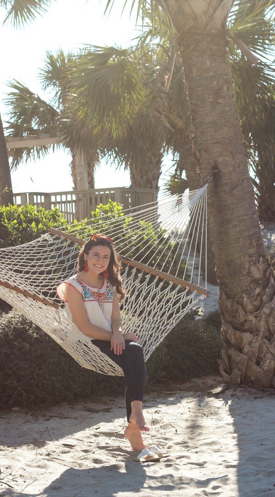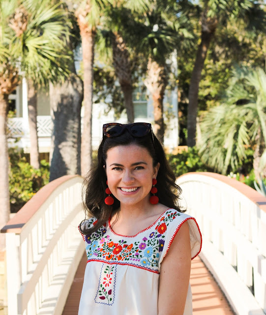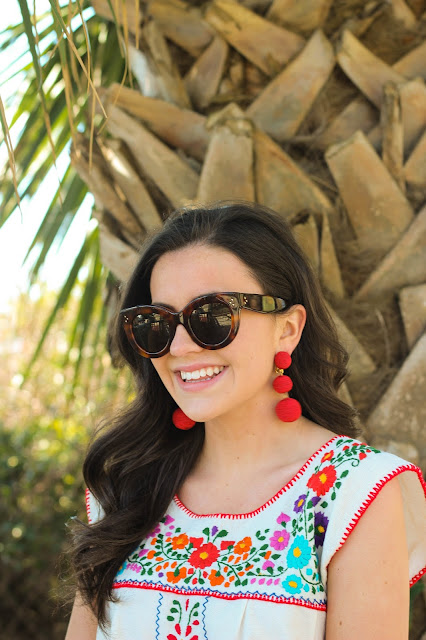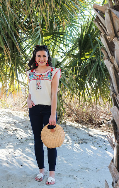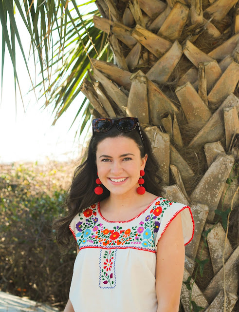 Hi everyone! I’m wishing I was back in the warmth instead of stuck at school in the snow! On my spring break trip this embroidered top from