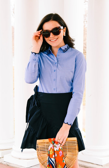 Hi everyone! I’m so sick of the cold, and can’t wait to start wearing spring pieces again like skirts and dresses. I recently received this ruffle wrap skirt from Red Dress Boutique and love it. It’s a fun skirt with the ruffle detail, but also the perfect navy so it can be paired with so many looks (plus its only $32)! Hopefully spring is right around the corner. Shop my look at the end of the post!