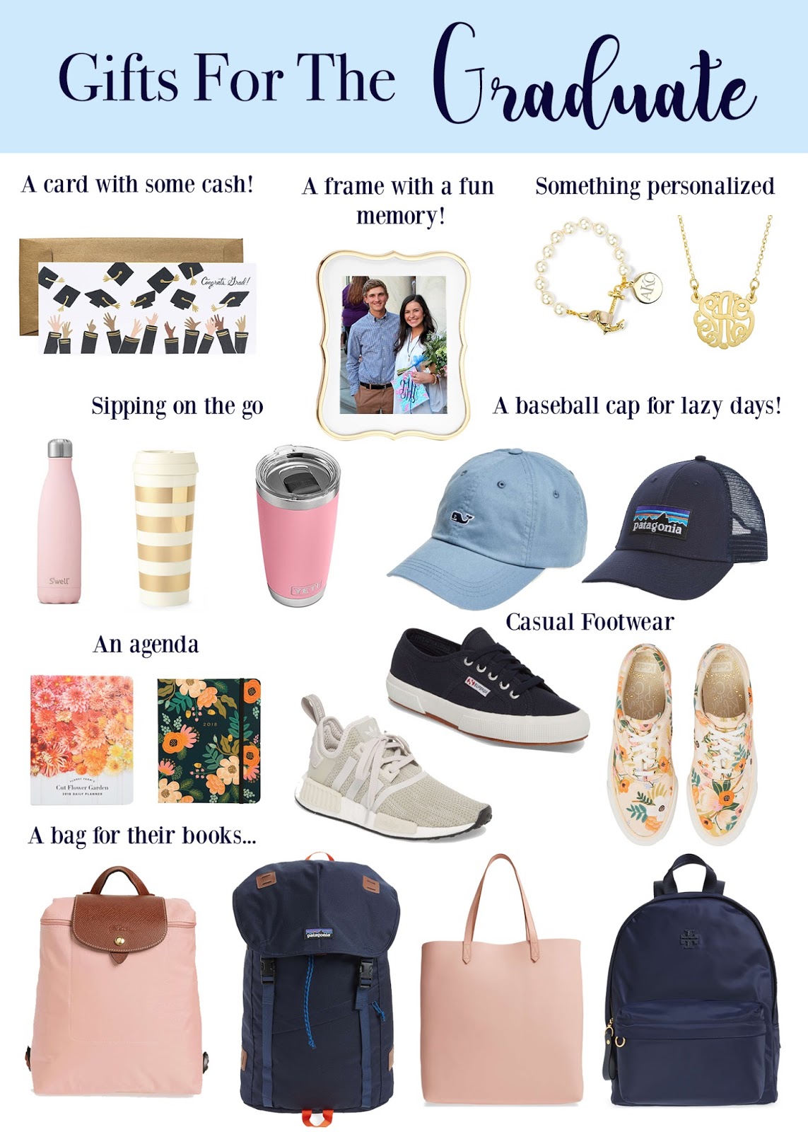 It’s almost that time of year again, GRADUATION! Graduating is such an exciting time in someones life. I’m always at graduation parties during the summer and I wanted to share a few ideas for graduation gifts. A lot of people typically will just do a card with some cash to help the grad save up for school, but I added in a few gifts that are more personal and fun.