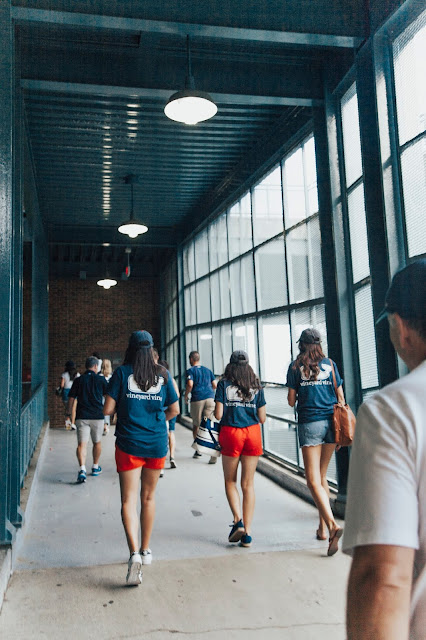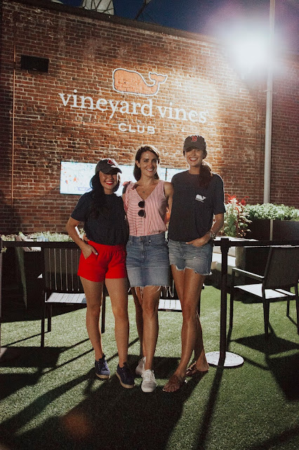 Hi everyone! One of my favorite parts of my trip to Boston was attending the Red Sox vs. Yankees game with Vineyard Vines. It was my first time at Fenway, and I’m so excited I was there for such an electric game. We were able to watch the game, and then headed up to the Vineyard Vines club. It’s such a beautiful and lively spot, with live music, corn hole and more. One of my favorite surprises of the trip was meeting David Ortiz, also known as ‘Big Papi’. It was such an incredible moment! Vineyard Vines came out with some adorable baseball tees, and Red Sox tees- shop them at the end of this post!