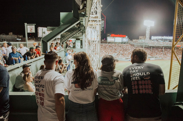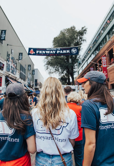 Hi everyone! One of my favorite parts of my trip to Boston was attending the Red Sox vs. Yankees game with Vineyard Vines. It was my first time at Fenway, and I’m so excited I was there for such an electric game. We were able to watch the game, and then headed up to the Vineyard Vines club. It’s such a beautiful and lively spot, with live music, corn hole and more. One of my favorite surprises of the trip was meeting David Ortiz, also known as ‘Big Papi’. It was such an incredible moment! Vineyard Vines came out with some adorable baseball tees, and Red Sox tees- shop them at the end of this post!