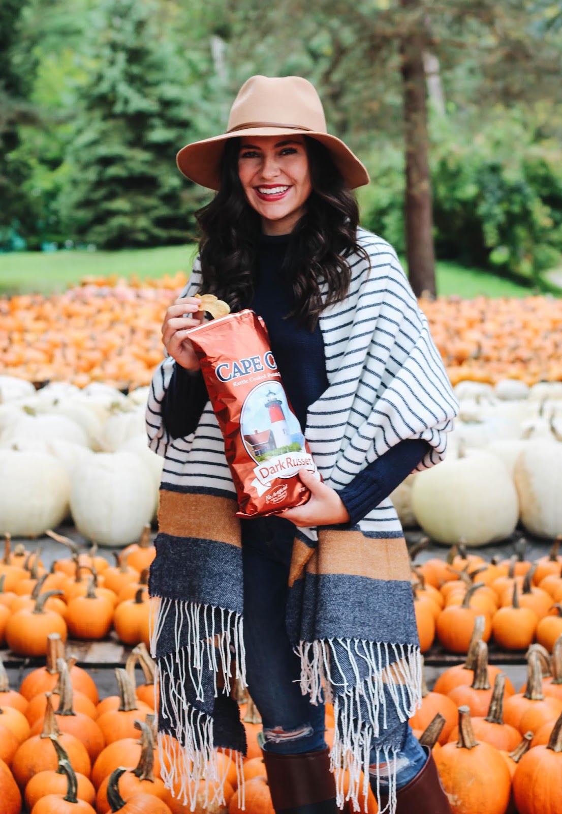 I don’t know about you, but the first few weeks in October I’m always trying to squeeze in as many fun fall activities as I can before the weather starts to get cold. Every year two of my favorite things to do are visiting a pumpkin patch and going apple picking. While visiting home I was able to do both, luckily they are right across the street from each other. When I’m not snacking on an apple or picking the perfect pumpkin, I love taking a break and snacking on my favorite chips from Cape Cod Chips. I was recently introduced to the Dark Russet and think I found a new favorite! They cooked to perfection, and have a homemade taste. What are your favorite Cape Cod Chips?