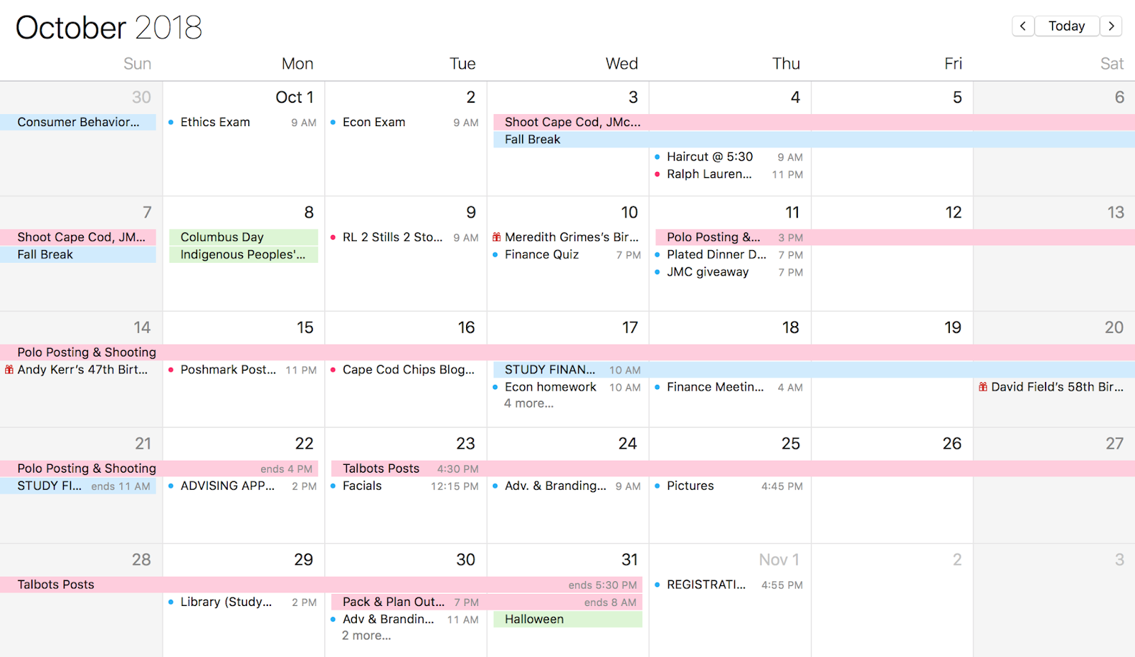 I am a huge fan of using a planner to stay organized, and this semester I even took it one step further and added everything to my calendar on my computer as well. One of my good friends uses his calendar to stay organized, and after seeing how organized he is, I knew I had to try it out. By writing everything down in multiple places, it helps me stay on-top of deadlines and prioritize what is most important. I love having everything on my calendar app since it’s both on my computer and phone. That way I can check it every day and know what I have due that day, if I have any special events, and if I have anything coming up. It’s also easy to color coordinate events, so I can separate between schoolwork, blogging, and miscellaneous events. Another great feature is that you can easily send calendar invites to others which is great for group projects and work events.