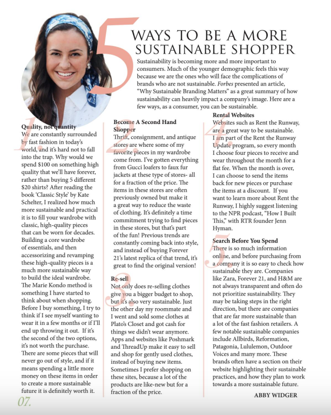 Hi everyone! I recently wrote an article for our on-campus Magazine, Statement. I took a class last year titled Global Trends, and we talked a lot about sustainability. This is an issue I think we all need to be more considerate of when we’re shopping, and here are 5 Ways To Be A More Sustainable Shopper.
