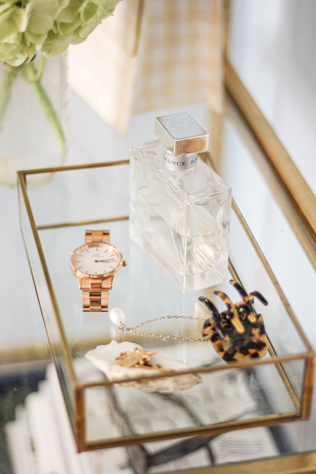 The Home Depot and then displayed a few of my favorite books and accessories. Both trays are really reasonably priced and perfect for a dorm or apartment. By using the trays along with products I already own, I was able to utilize the shelf for storage but also have it look put together at a smaller price tag.