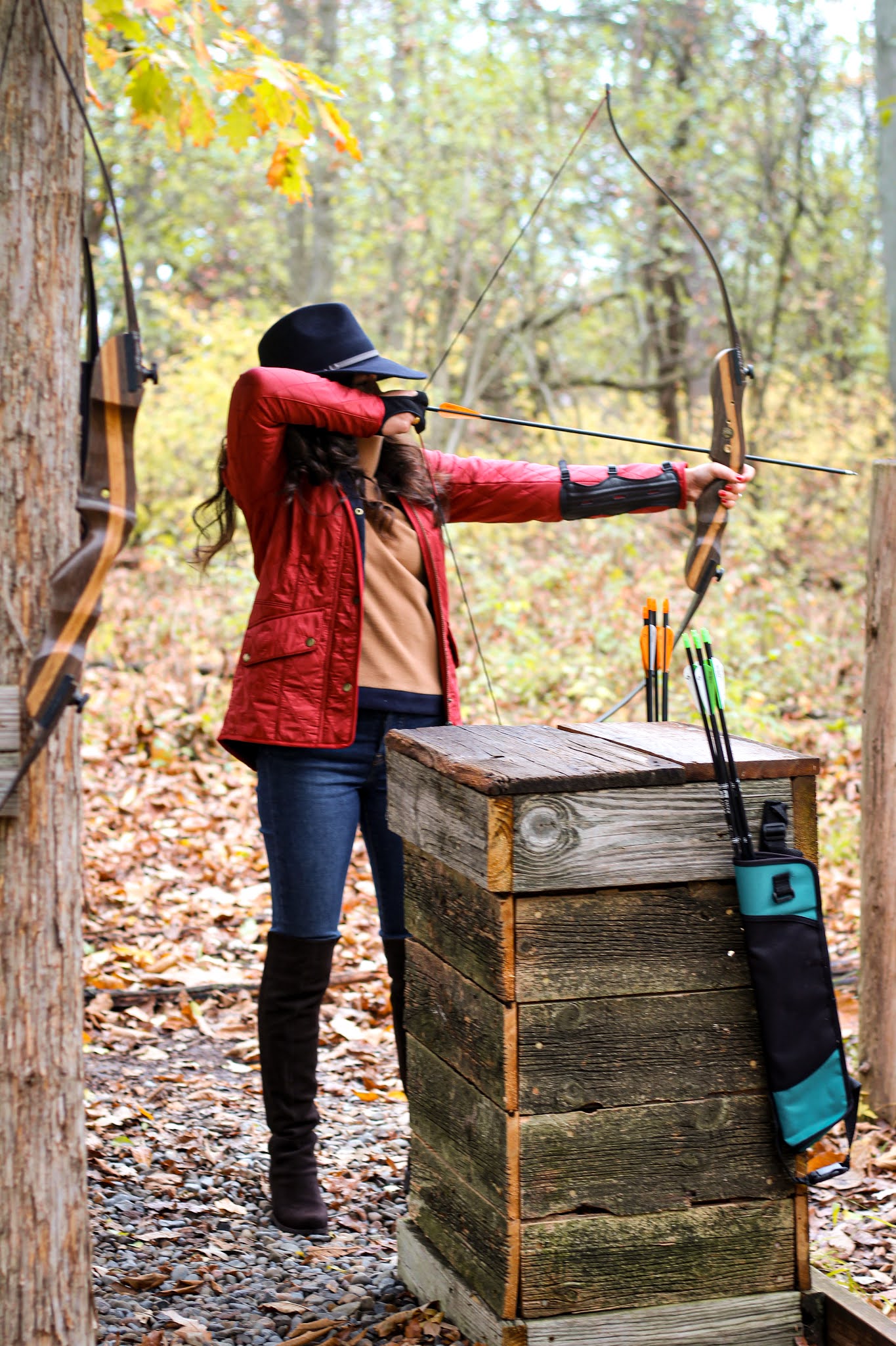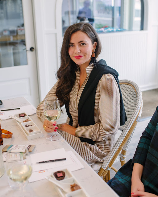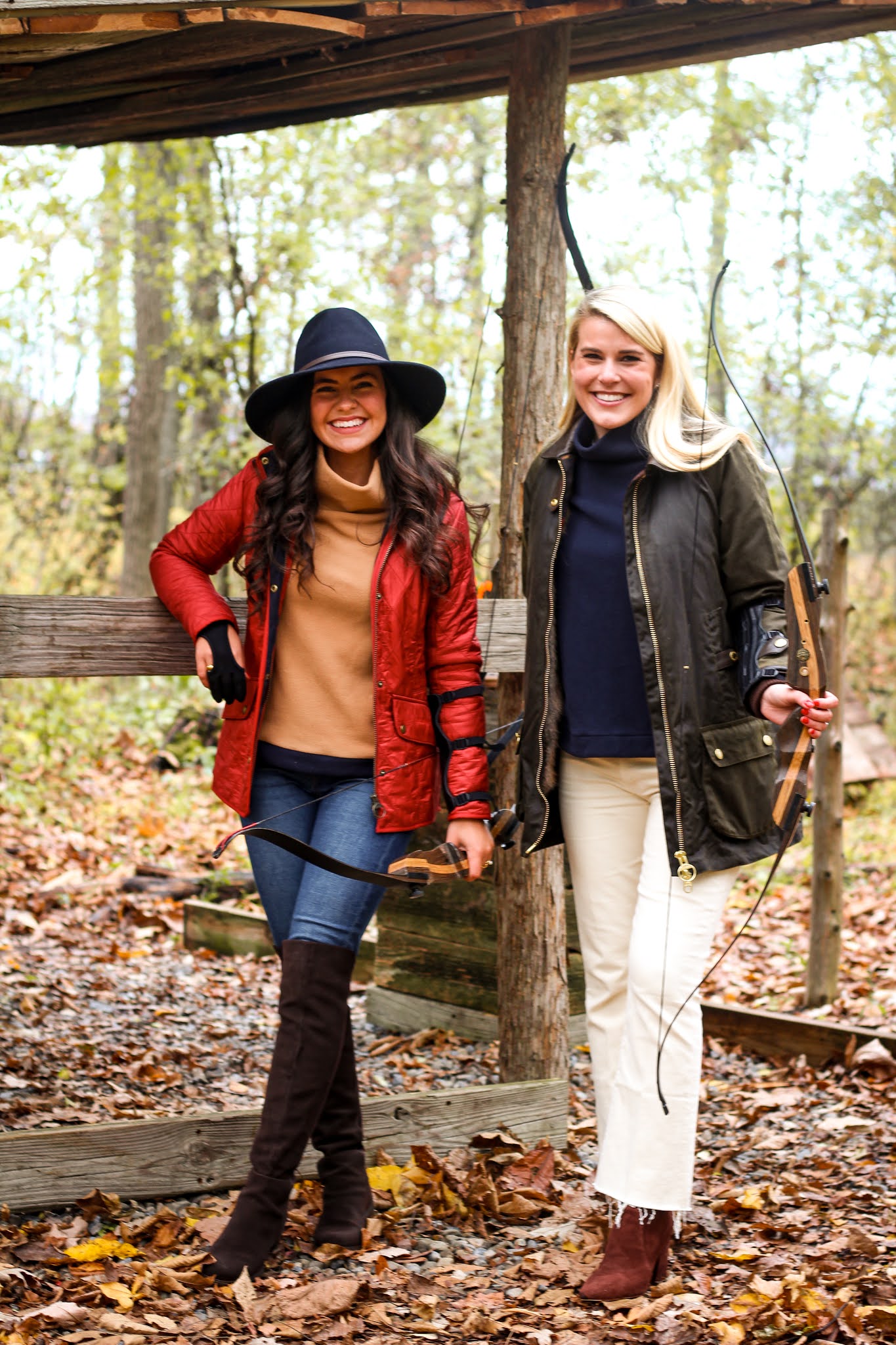 The Inns have so many unique activities so we wanted to fit in as many things as we could while we were there. It was a rainy morning so we headed to the Village Market which to grab a coffee and baked goods. By then the rain had subsided and we were ready to go to our archery lesson with Matt and Mike. They were the best teachers and Sydney and I got the hang of it so quickly! It was such a fun experience and I would definitely recommend it if you end up going. The temperatures dropped almost 30 degrees from Friday, so we bundled up in our Barbour jackets and Dudley Stephens. The color block Dudley I wore is exclusive to Tuckernuck and I could not be more obsessed. After archery, we headed to Aurora Cooks for a chocolate tasting. They have so many different experiences at Aurora Cooks and it is such a beautiful space. I dressed up my Dudley Stephens by wearing it over a dress and adding some fun heels- they are so great to dress up or down! After the chocolate tasting, we had dinner at 1833 Kitchen & Bar which was lovely.