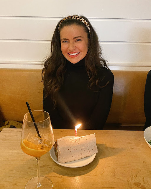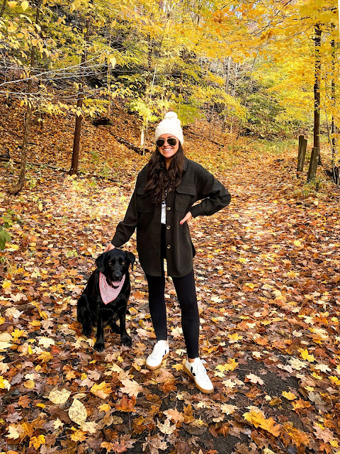 Today has been such a great day! I started the day with a workout at my favorite gym, Rise in Hamburg, which was a great way to begin the day. After our workout, my friend Carolyn and I went to brunch with my mom which was delicious. I couldn’t think of anything specific I wanted this year, so my mom and I decided to go shopping to pick out a few things. We had so much fun and I found a couple adorable pieces. When we got home we decided to take a short hike with Scout at one of my favorite spots- the foliage was stunning! Tonight we’re having a few close friends over for some cake and wine and I couldn’t be more excited.