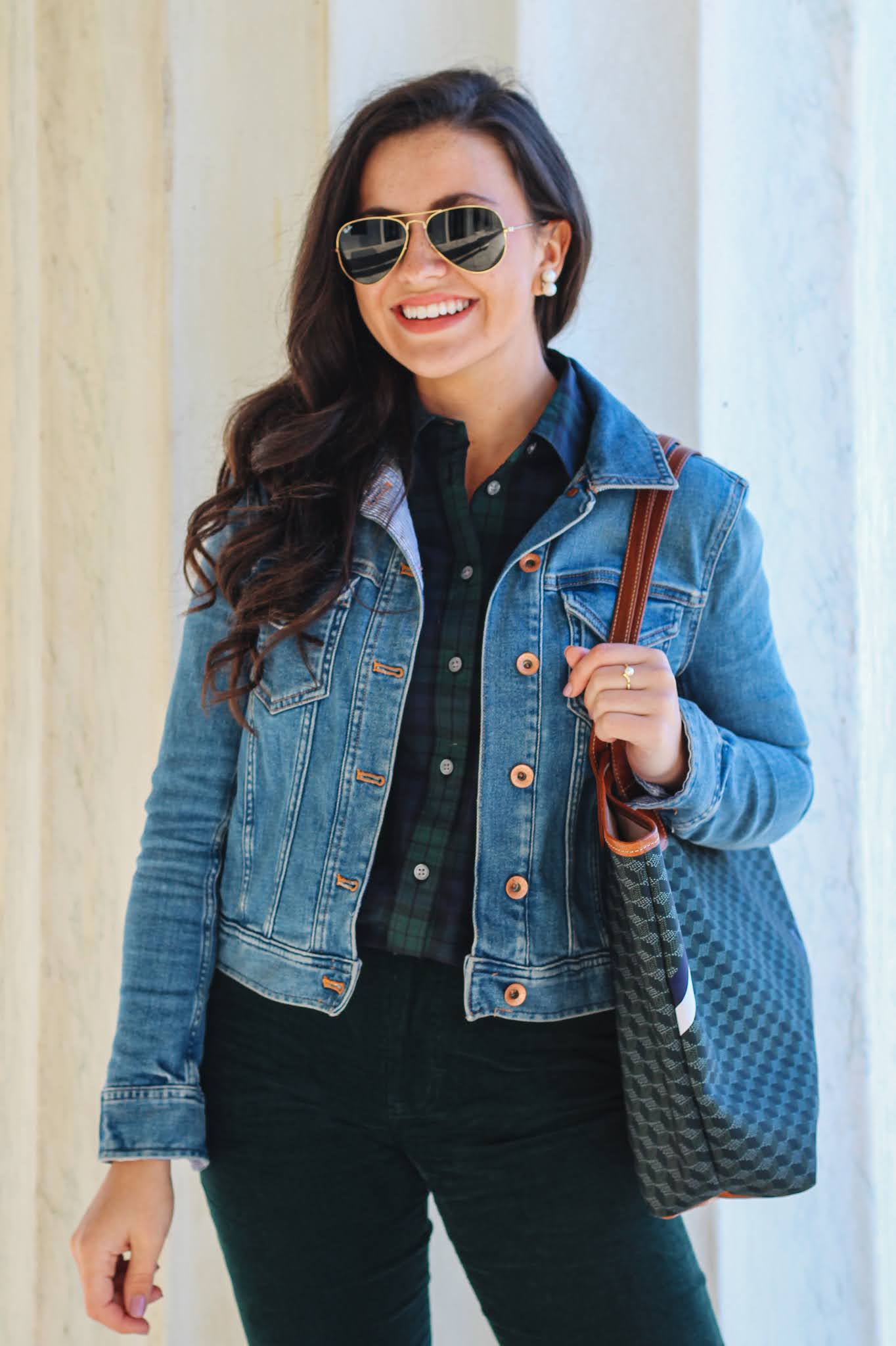 Happy Thursday everyone! As we approach the holidays, I’m always on the lookout for cute holiday pieces that don’t break the bank and are versatile. I scored this adorable blackwatch plaid button-down and green cords both for under $50 and could not be more obsessed. Both pieces look great dressed up but can easily be styled in a more casual way as well. In today’s post, I’m featuring both items and how I plan on styling them for the holidays. The first look is on the dressy side paired with some statement earrings, leopard heels, and a leather blazer. I think this outfit is so chic and would be great for a holiday gathering. For the casual look, I opted for a pair of my favorite Tretorns and threw on a jean jacket. Which look is your favorite?