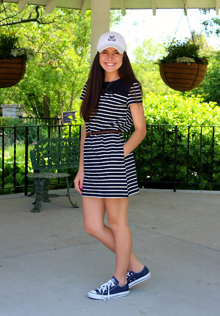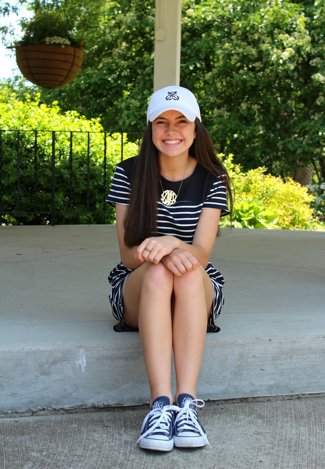 Hi everyone! Hope your Memorial Day weekend is off to a great start! In todays post I’m wearing this adorable striped tee shirt dress from www.SheIn.com. When I opened this dress, I was blown away by how well made it is. Not only does it have pockets, the material it’s made of is so nice. For under $20 this dress is an absolute must for summer. I’m also wearing my absolute favorite pair of sneakers. I love the monogram, and they are so cute for summer.